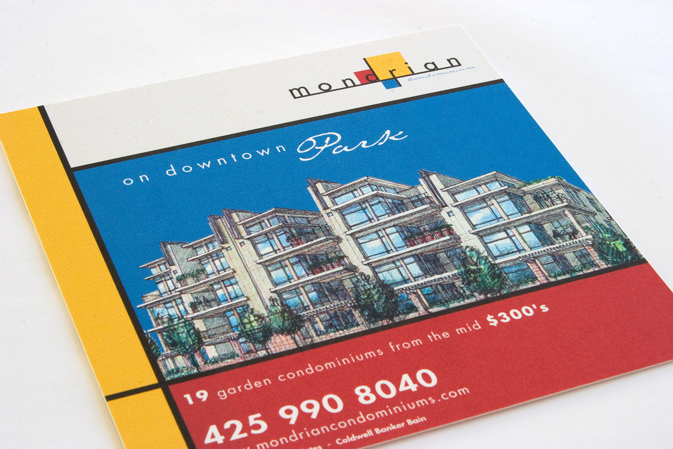 Design logo, collateral, advertising and signage for luxury condominiums on the park in Bellevue, Washington.