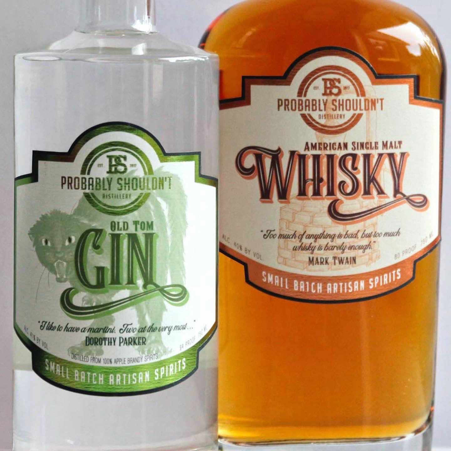 Packaging design for a craft distillery. Despite all the hurdles they’ve vaulted over, from learning to farm and distill to the regulatory process for organic certification and distilling they’ve succeeded. “Probably Shouldn’t” is an homage to the deterrence they repeatedly ignored.